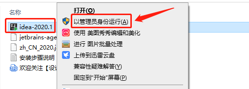 2、鼠标右击【idea-2020.1】以管理员身份运行。