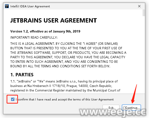 10、勾选【请确认我已阅读并接受本用户协议的条款】点击【Continue】继续。