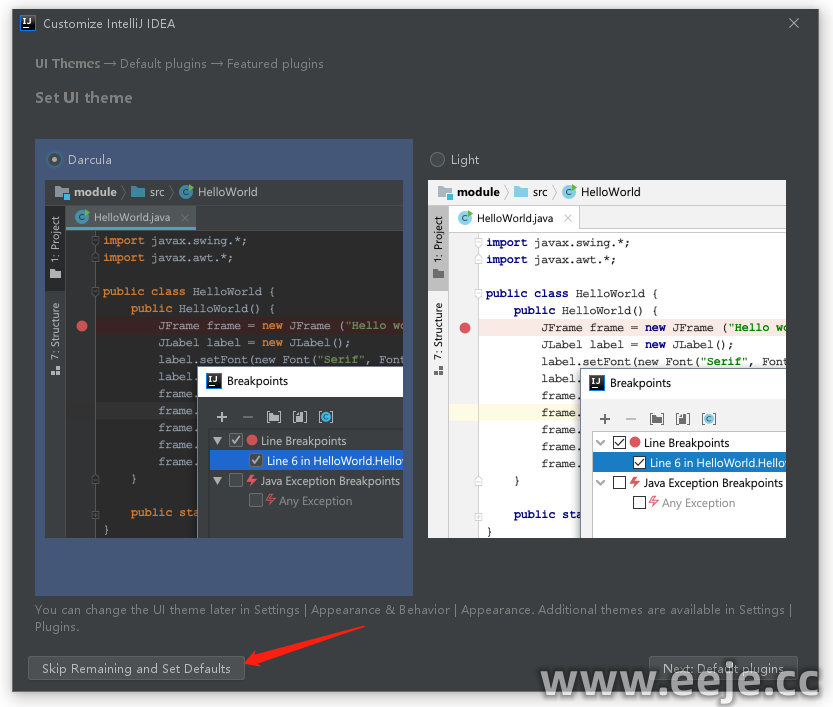 13、点击【Skip Remaining and Set Defaults】跳过。