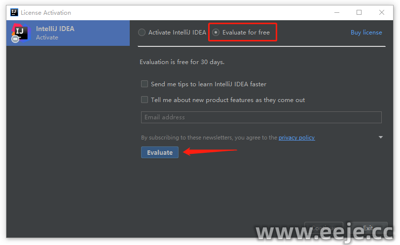 14、鼠标选择【Evaluate for free】,再点击【Evaluate】。