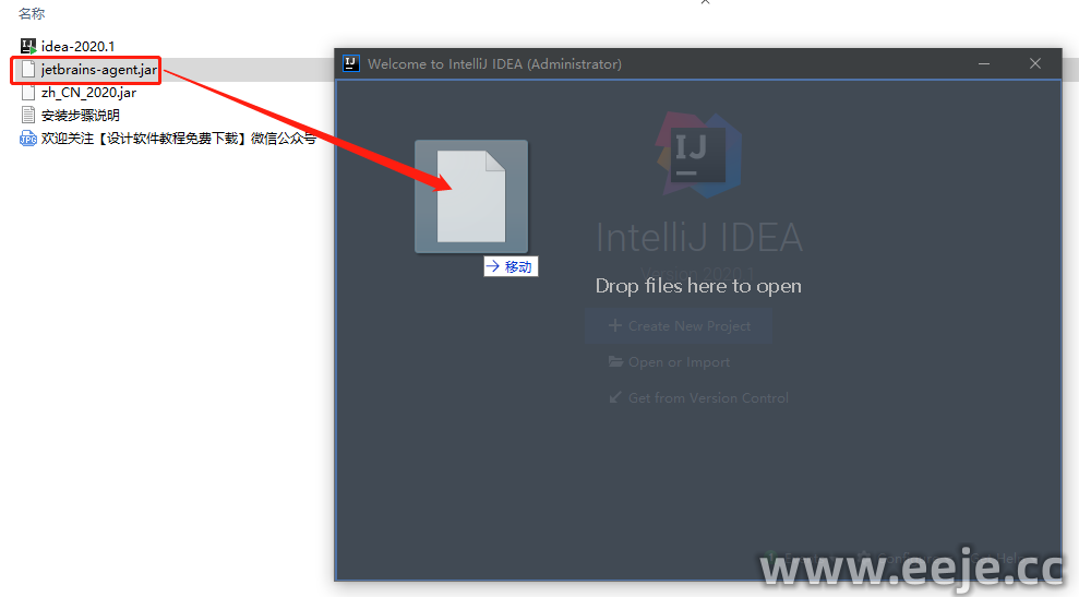15、打开软件压缩包把【jetbrains-agent.jar】用鼠标拖到软件里面放开。