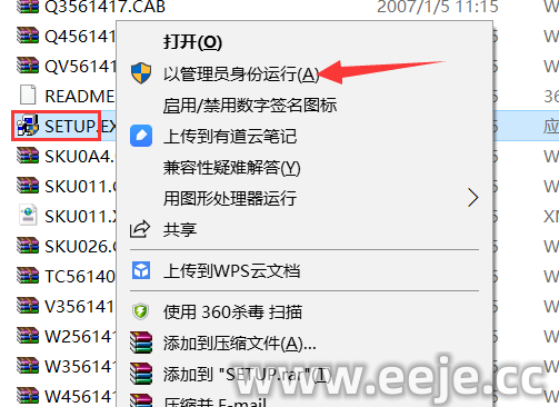 2.打开【MicrosoftOffice-v2003文件夹】,鼠标右击【setup】选择【以管理员身份运行】。