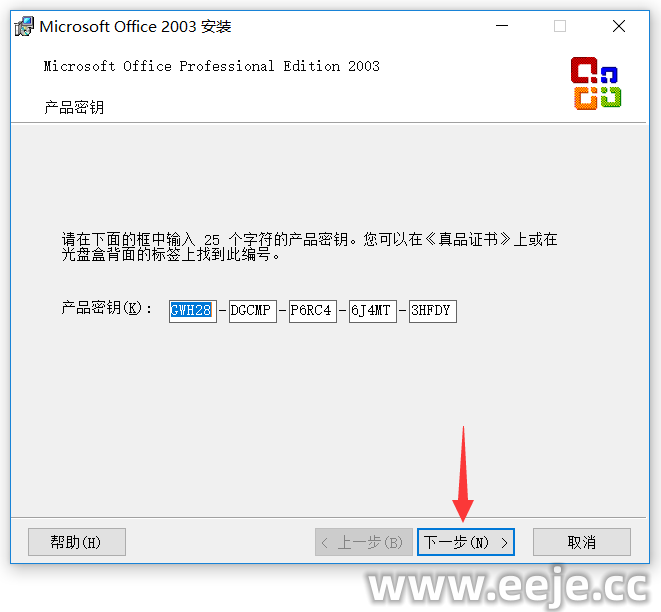 输入产品密钥:【GWH28-DGCMP-P6RC4-6J4MT-3HFDY】 点击【下一步】。