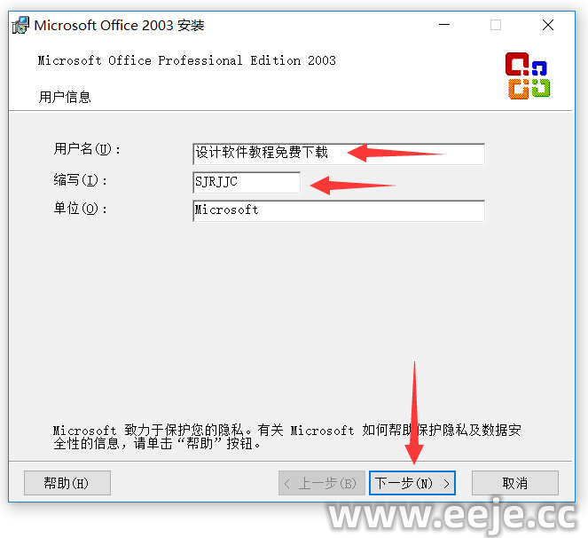 4.随便填写【用户名、缩写、单位】,再点击【下一步】。