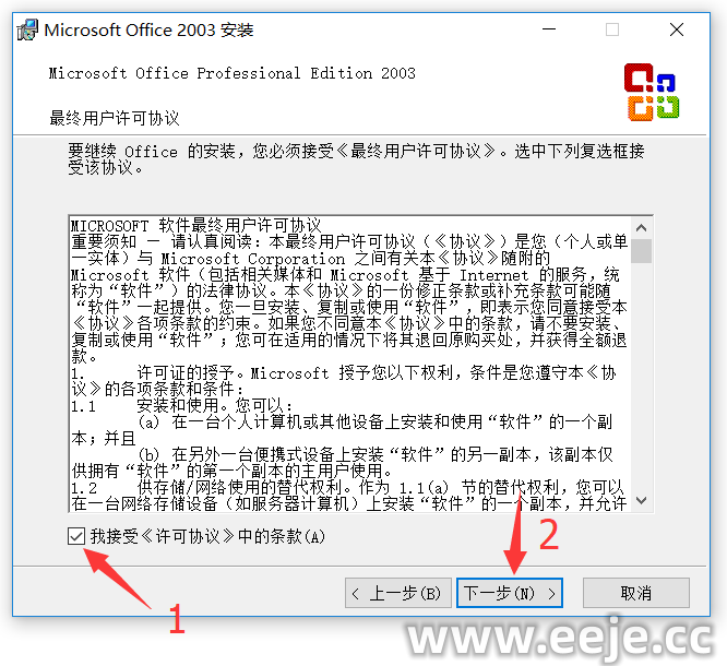 5.打钩【我接受许可协议中的条款】,再点击【下一步】。