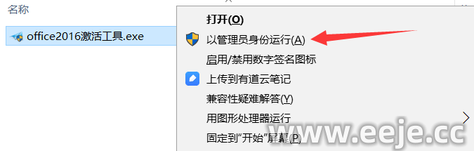 6、返回安装包文件夹,打开【office2016激活工具】文件夹, 鼠标右击【office2016激活工具】,点击【以管理员身份运行】。
