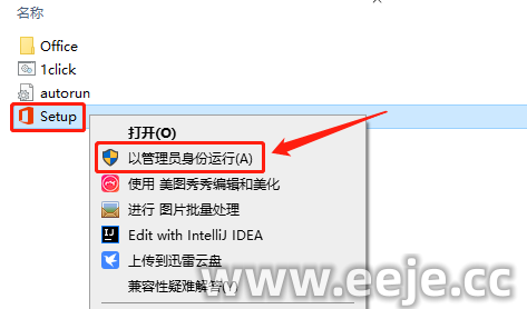2、鼠标右击【Setup】点击【以管理员身份运行】。