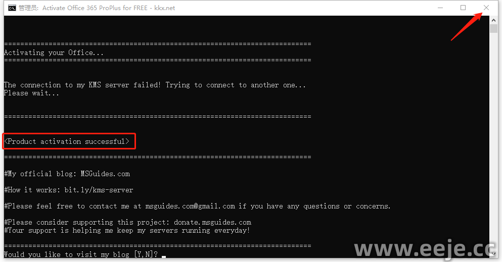 6、这里看到这一行字【Product activation successful】说明激活完成,点击【关闭】。