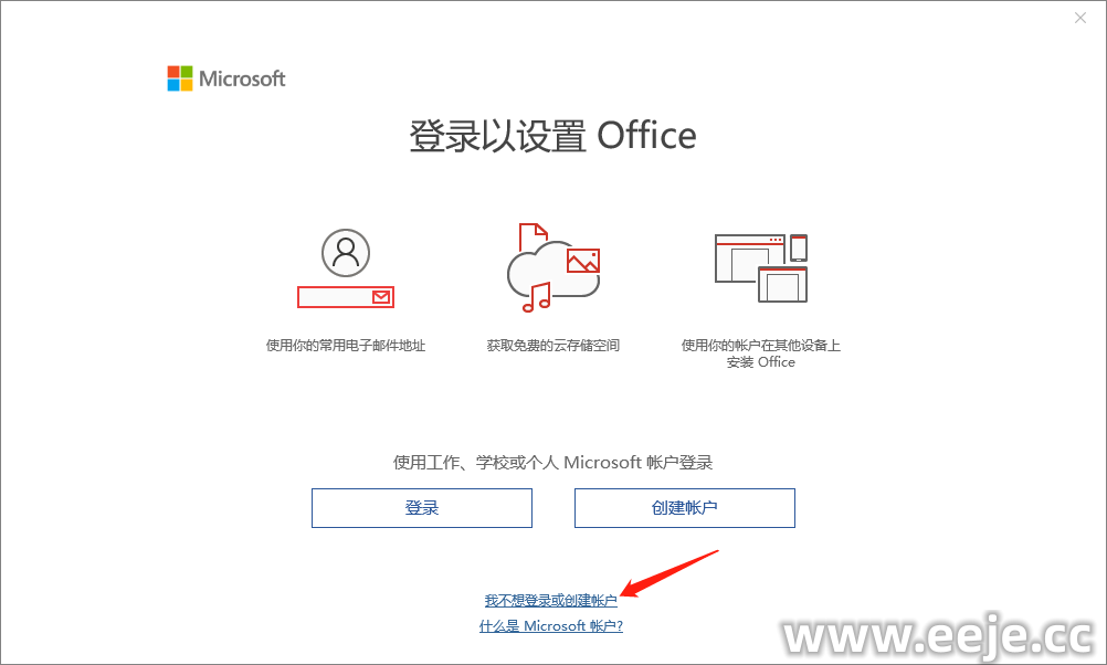 8、没有账户的这里我们可以先点击【我不要登录或创建账户】有账户的除外。
