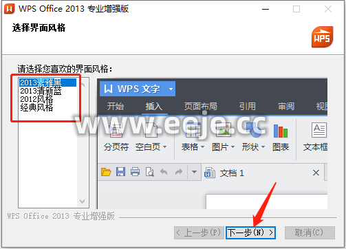 11、这里选择一个你喜欢的界面风格,再点击【下一步】。