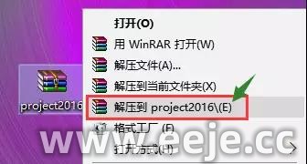 1、右击软件压缩包,选择【解压到project2016】,根据自己电脑操作系统位数,选择打开对应的安装包,双击【setup】。