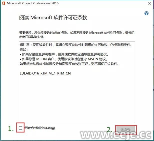 2、打钩【我接受协议】,然后点【继续】。