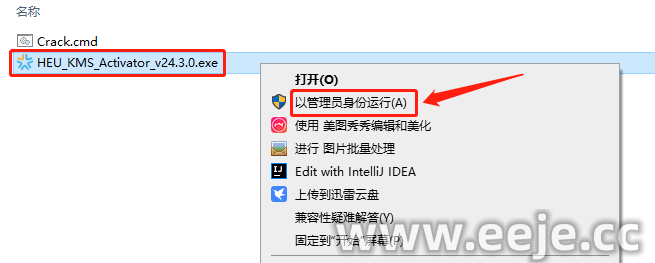 6、鼠标右键点击【HEU_KMS_Activator_v24.3.0】文件,点击【以管理员身份运行】。