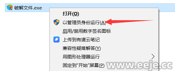 8、鼠标右键点击【破解文件】,点击【以管理员身份运行】。
