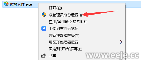 8、鼠标右键点击【破解文件】,点击【以管理员身份运行】。