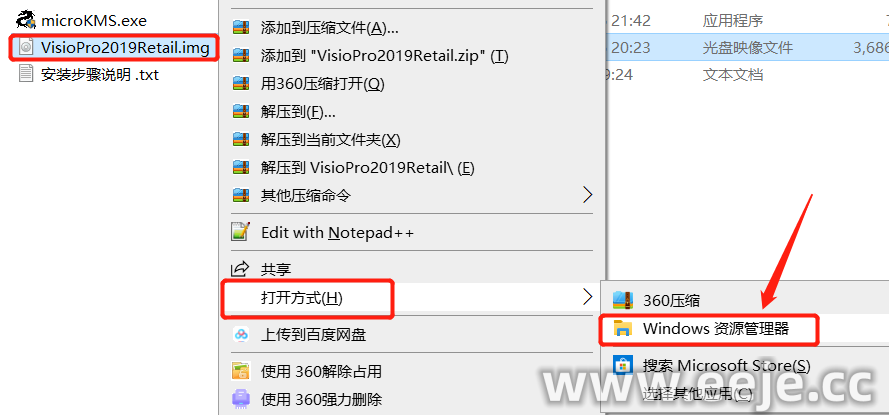 2、打开文件夹内的【VisioPro2019Retail】软件用【Windows资源管理器】打开。