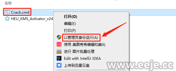 6、这两个文件都是激活工具随便用一个就可以,鼠标右键点击【Crack.cmd】文件,点击【以管理员身份运行】。