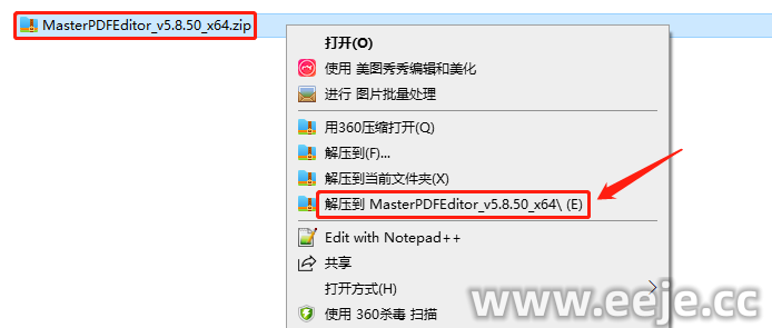 1、下载好软件,鼠标右键解压。