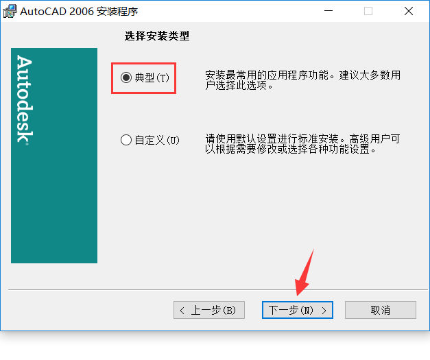 7、默认选择典型,点击下一步
