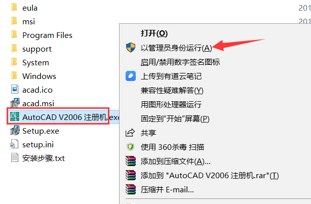 18、回到刚解压的文件夹,鼠标右击AutoCAD V2006 注册机选择以管理员身份运行