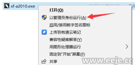 18、鼠标右击xf-a2010 选择以管理员身份运行