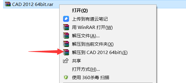1、点击软件安装包,鼠标右击选择解压到CAD 2012 64bit