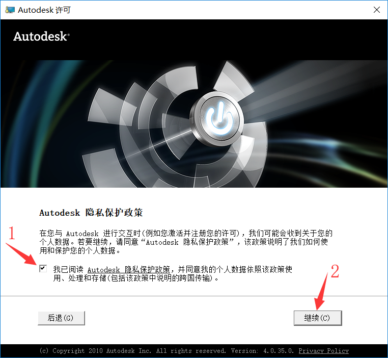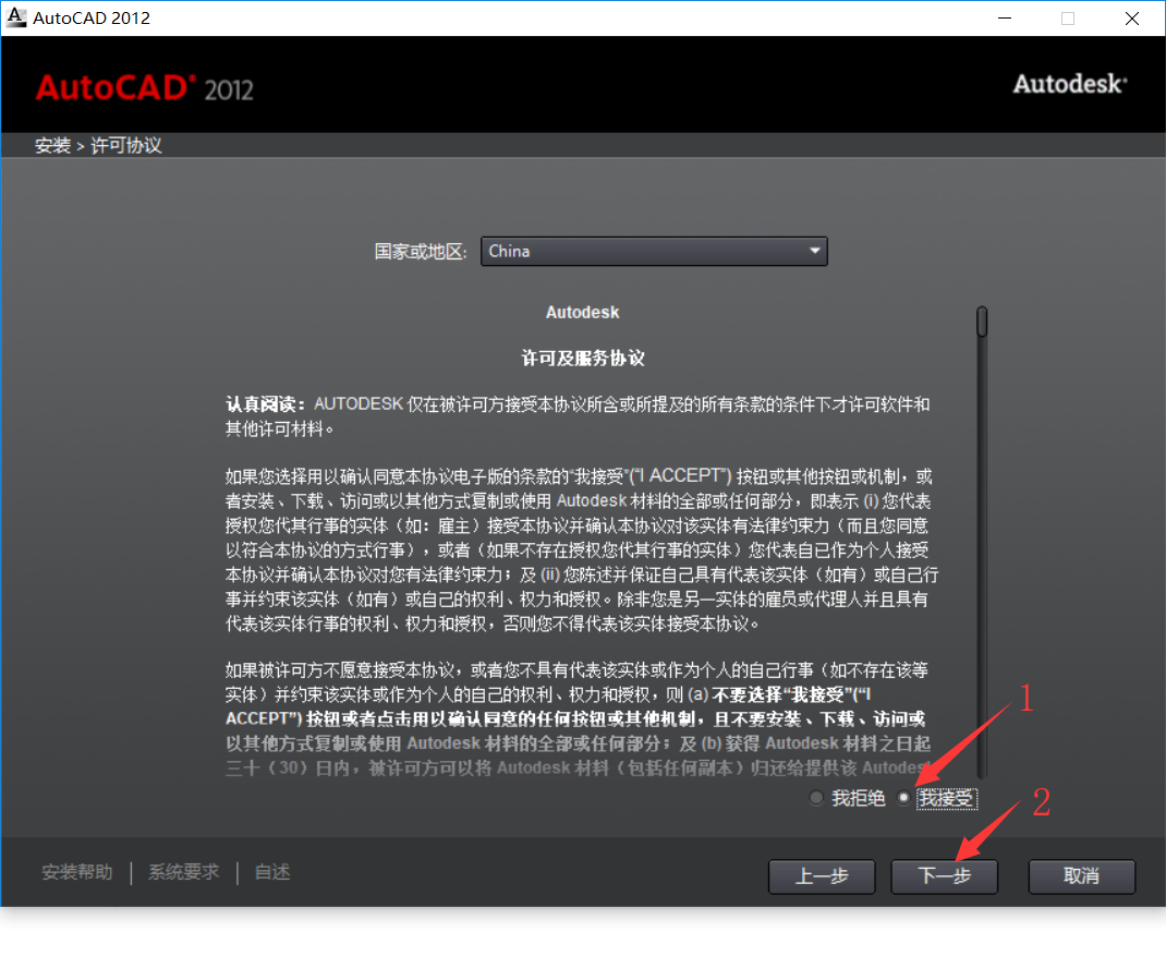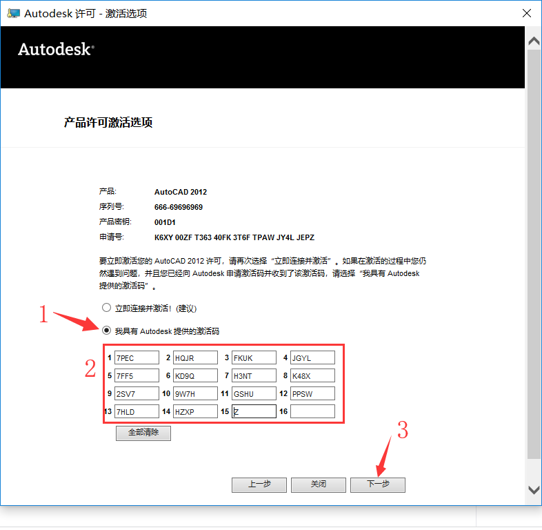 22、选择我具有 Autodesk 提供的激活码 ,在把刚复制的激活码(用快捷键Ctrl+V)粘贴到框内,在点击下一步