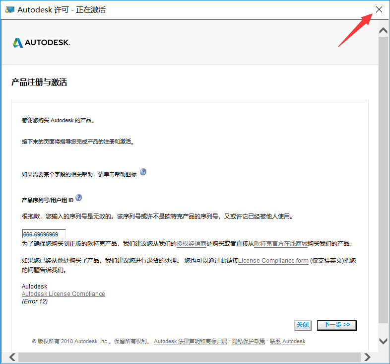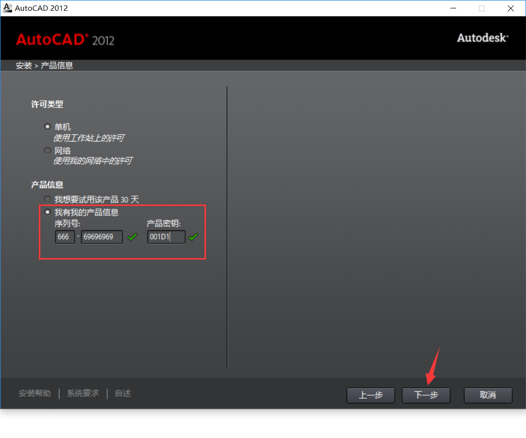 6、输入系列号:666-69696969 产品密钥:001D1,填完点击下一步