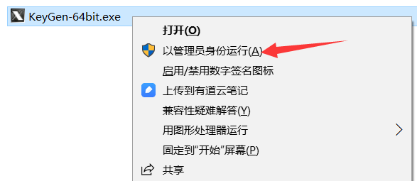 18、鼠标右击KeyGen-64bit 选择以管理员身份运行