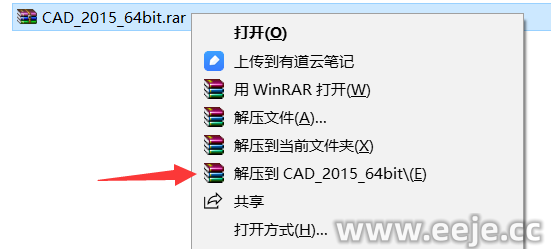 1、点击软件安装包,鼠标右击选择解压到CAD_2015_64bit