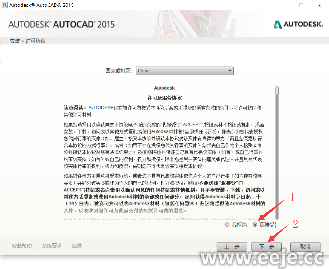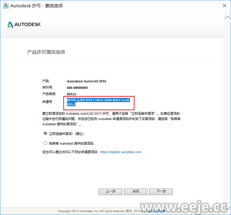 23、选择我具有 Autodesk 提供的激活码 ,把刚复制的粘贴进去在点击下一步