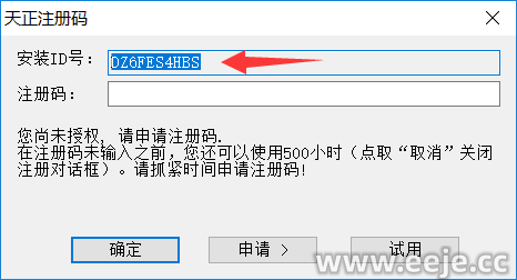 17、跳出注册界面复制【安装ID号框内的数字】。
