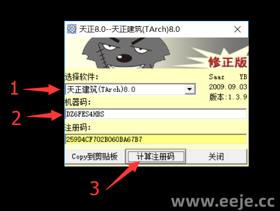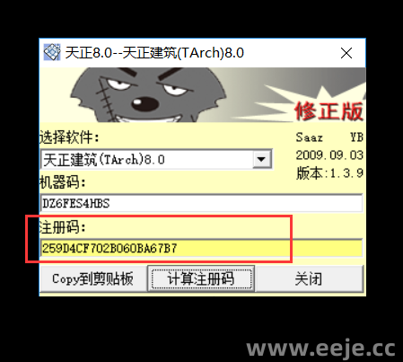 19、选择软件【天正建筑8.0】在把刚复制的【ID号】粘贴到【机器码框内】在点击【计算注册码】。