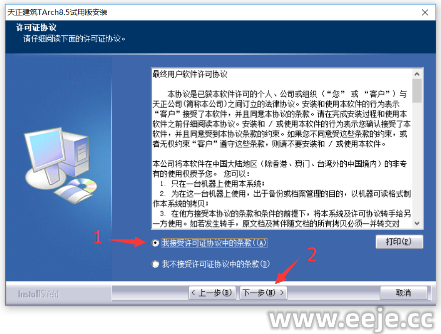 4、选择【我接受许可证协议中的条款】,再点击【下一步】。