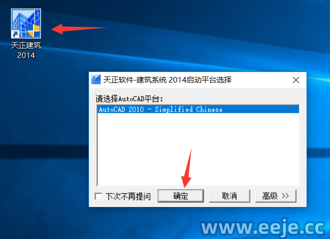 15、打开【天正软件】,这里就是选择你电脑安装的CAD版本了,只有支持的版本才会显示在下面,选择一个CAD版本再点击【确定】,下次不想再跳出这个框可以把打钩去掉,下次打开默认按你这次选择的CAD版本进入。