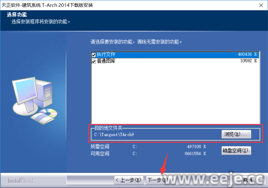 6、点击【下一步】默认安装在C盘,(要安装到别的盘点击【浏览】选择自己要安装的位置)我这里就不改了点击【下一步】。