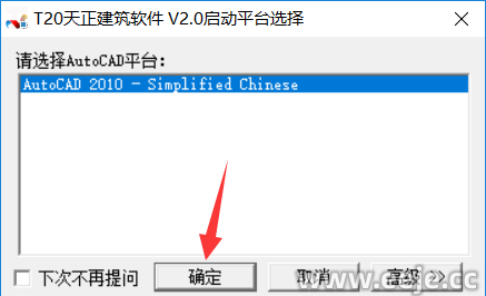 10、这里就是选择你电脑安装的CAD版本了,只有支持的版本才会显示在下面,选择一个CAD版本再点击【确定】,下次不想再跳出这个框可以把打钩去掉,下次打开默认按你这次选择的CAD版本进入。