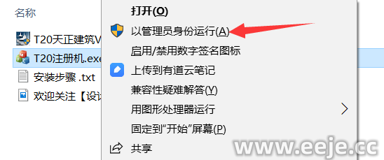 13、再回到刚才解压的文件夹找到【T20注册机】右击【以管理员身份运行】。