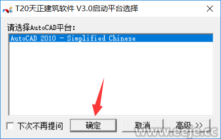 15、这里就是选择你电脑安装的CAD版本了,只有支持的版本才会显示在下面,选择一个CAD版本再点击【确定】,下次不想再跳出这个框可以把打钩去掉,下次打开默认按你这次选择的CAD版本进入。