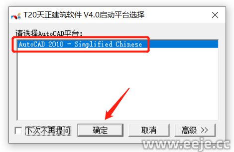 15、这里就是选择你电脑安装的CAD版本了,只有支持的版本才会显示在下面,选择一个CAD版本再点击【确定】,下次不想再跳出这个框可以把打钩去掉,下次打开默认按你这次选择的CAD版本进入。