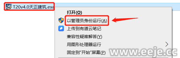 3、鼠标右击【T20v4.0天正建筑】以管理员身份运行。