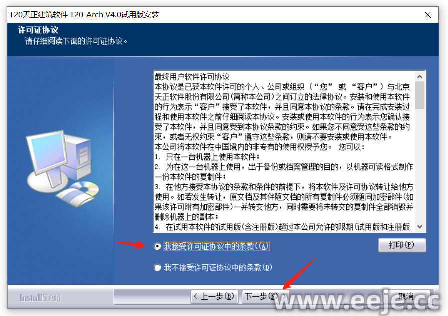 4、选择【我接受许可证协议中的条款】,再点击【下一步】。