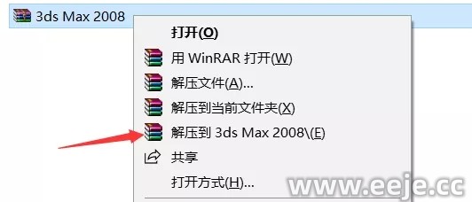 1、点击软件安装包,鼠标右击选择【解压到3ds Max 2008】。
