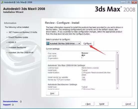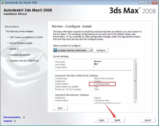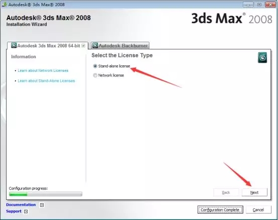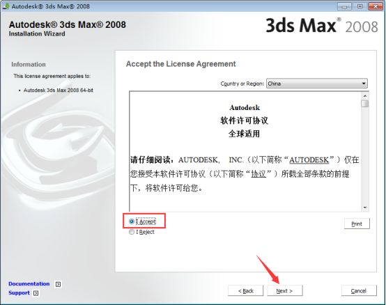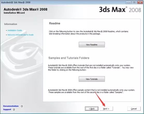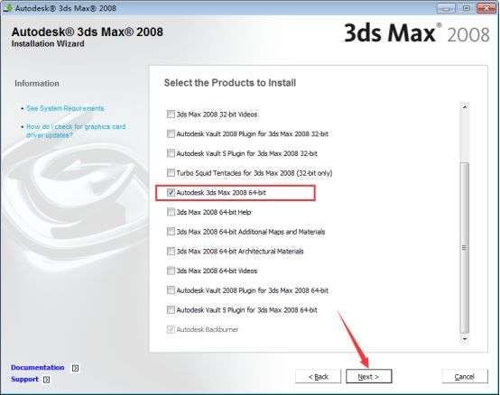 6、这里是安装软件的一些插件,如果不知道的话默认勾选即可,这里我只勾选【Autodesk 3ds Max 2008 64-bit】主程序,然后鼠标点击【Next】下一步。