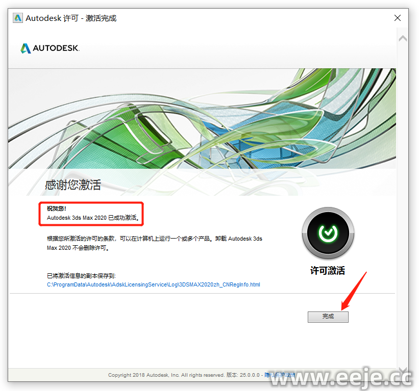 25、看到【已成功激活】说明安装成功了,点击【完成】。