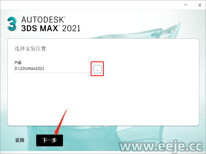 8、点击三个小点【…】可以更改安装位置(建议不要安装在C盘,可以在D盘或其它磁盘下新建一个文件夹),再点击【下一步】。(提示:安装路径中不能有中文)