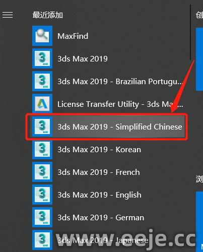 10、在电脑左下角点击开始菜单找到【3ds Max 2019-Simplified Chinese】点击打开。