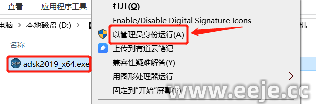 20、鼠标右击【adsk2019_x64】选择【以管理员身份运行】。