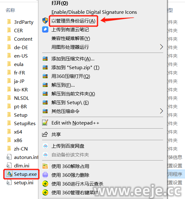 3、鼠标右击【Setup】以管理员身份运行。