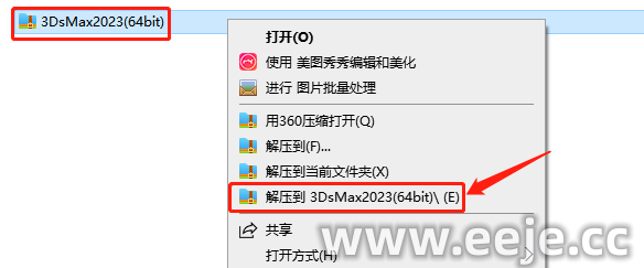 2、打开文件夹到这个界面,鼠标右键【Autodesk_3ds_Max_2023_EFGJKPS_Win_64bit_001_004.sfx】,选择【以管理员身份运行】。